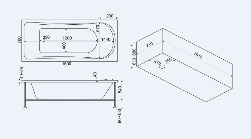 Акриловая ванна Bas Стайл 160x70 см без гидромассажа купить