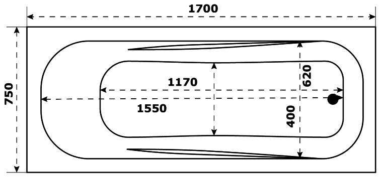 Акриловая ванна Bas Толедо 170x75 см