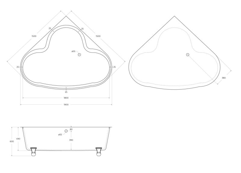 Акриловая ванна BelBagno BB07 с ножками и сливом-переливом