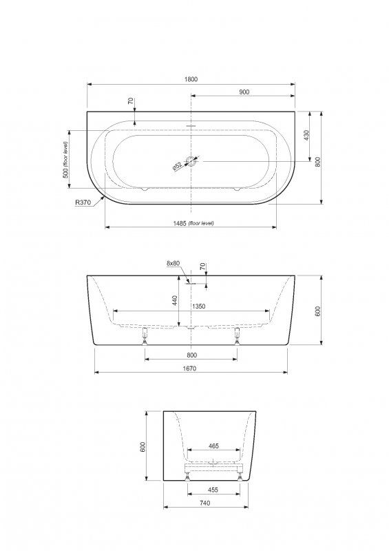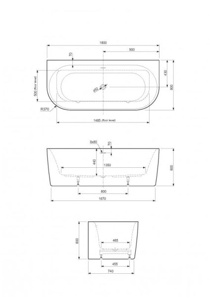 Акриловая ванна CEZARES METAURO-INT-Wall-180-80-60-B-W-MATT