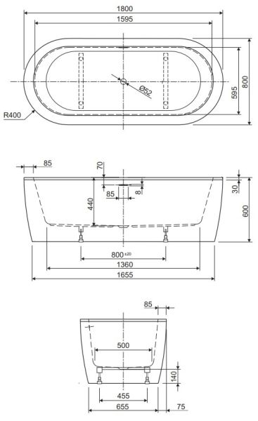 Акриловая отдельно стоящая ванна в сборе