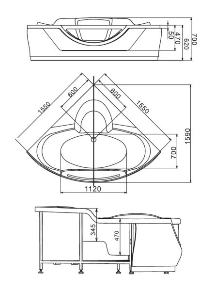 Акриловая ванна Gemy G9025 II K 155x155x70
