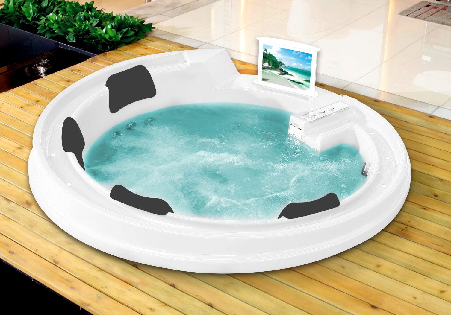 - изящный ручеек по бортику с подсветкой (включается вместе с гидромассажем)