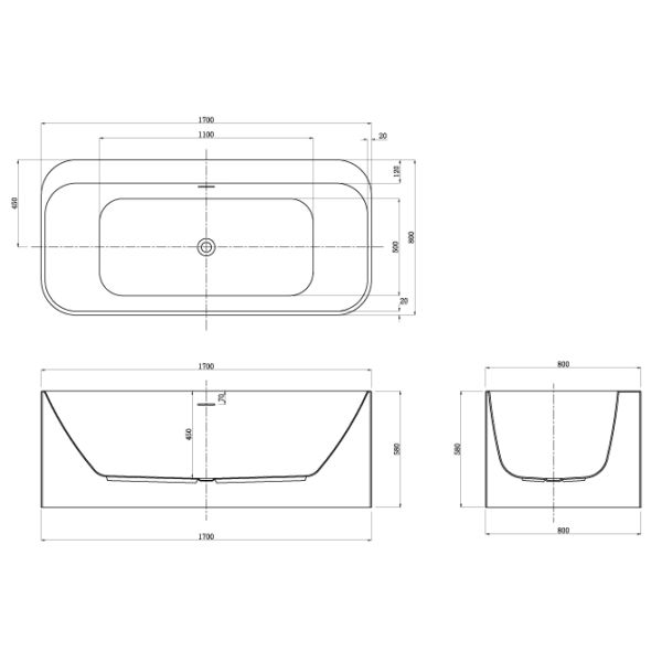 Акриловая ванна RANGALI RAN17080 пристенная 1700х800х580