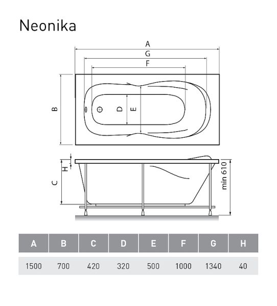 Акриловая ванна Relisan Neonika 180x80 Гл000000976 без гидромассажа