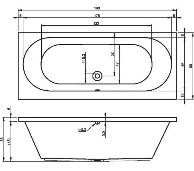 Прямоугольная акриловая ванна RIHO CAROLINA 190x80 изготовлена из высококачественного листа акрила глянцевого белого цвета