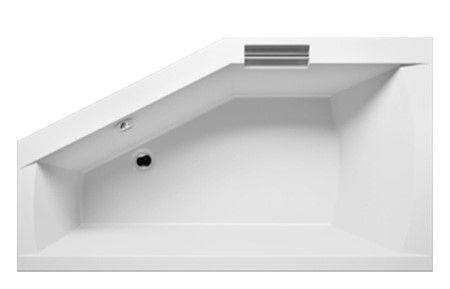 ?Асимметричная ванна RIHO Geta 170x90 R Plug & Play из глянцевого белого акрила, со скошенными краями и встроенной хромированной ручкой представляет собой полностью собранную на заводе конструкцию.