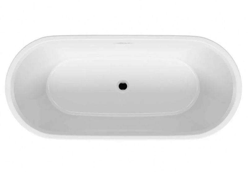 Белая глянцевая ванна с системой наполнения поставлляется с хромированным сливом переливом