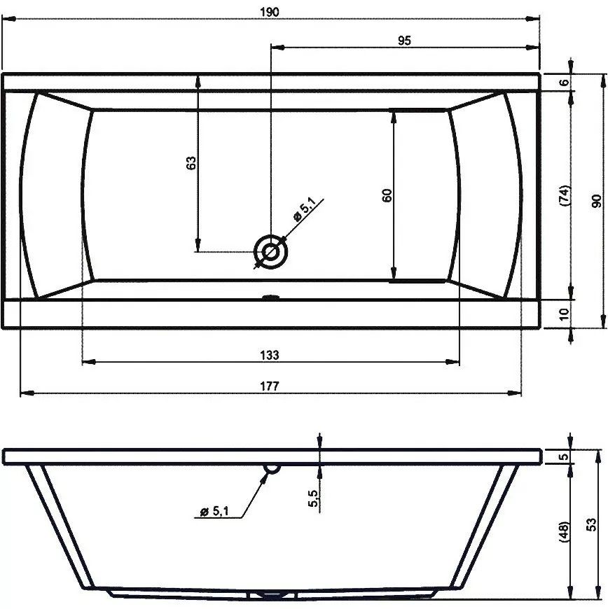 Прямоугольная акриловая ванна RIHO JULIA 190x90 изготовлена из высококачественного листа акрила глянцевого белого цвета