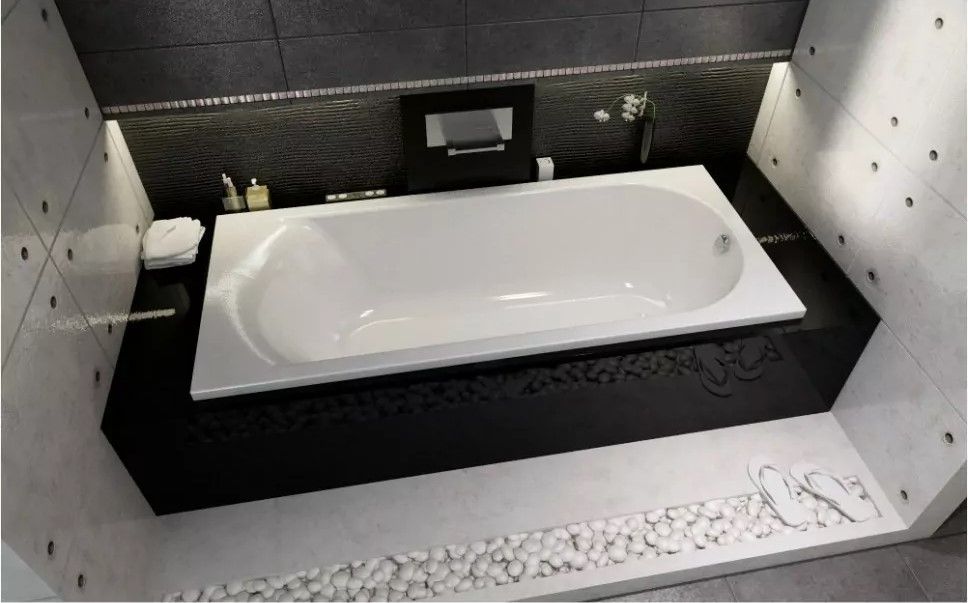 Материал непористый и гладкий, поэтому на нём не остаются известковый налёт и бактерии, поверхность ванны легко очищается.