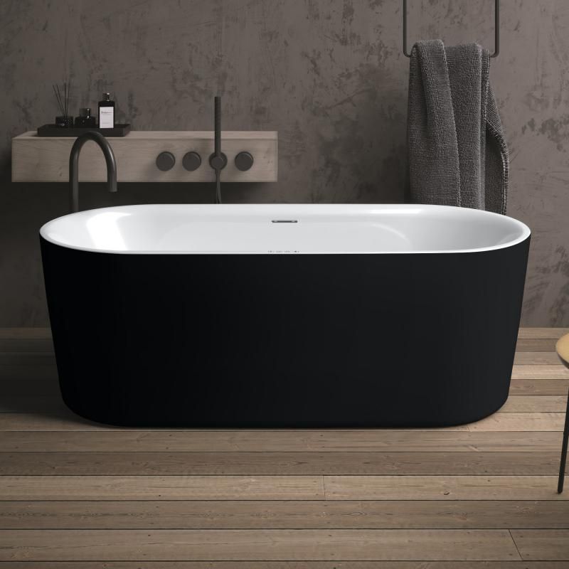 Отдельностоящая черно-белая глянцевая ванна Riho Modesty 170х76 достойна своего названия: ванна сочетает в себе роскошный внешний вид с комфортом и удобством для пользователя, не будучи эксцентричной. Это ванна овальной формы с красивым тонким бортиком.