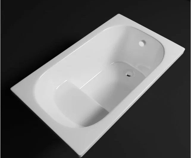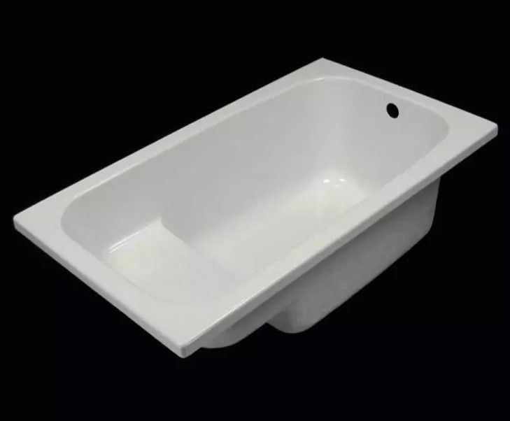 Эта глянцевая белая акриловая ванна имеет прямоугольную форму.
