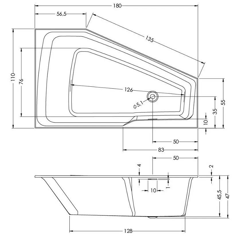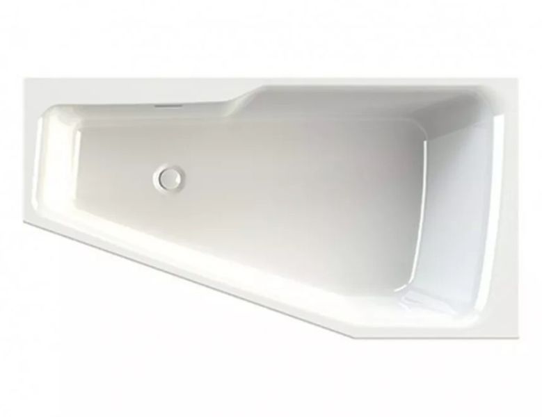 Асимметричная ванна RIHO RETHINK Space 180110 L PLUG & PLAY RIHO FALL, из глянцевого белого акрила с тонкими бортами и большим внутренним пространством, сливом Push-Open и щелевым переливом, представляет собой полностью собранную на заводе конструкцию.