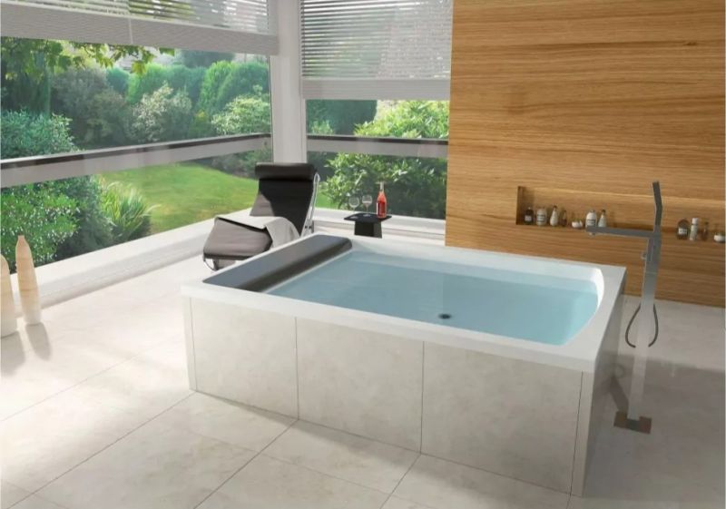 На ощупь ванна тёплая, вода остывает в ней медленно.