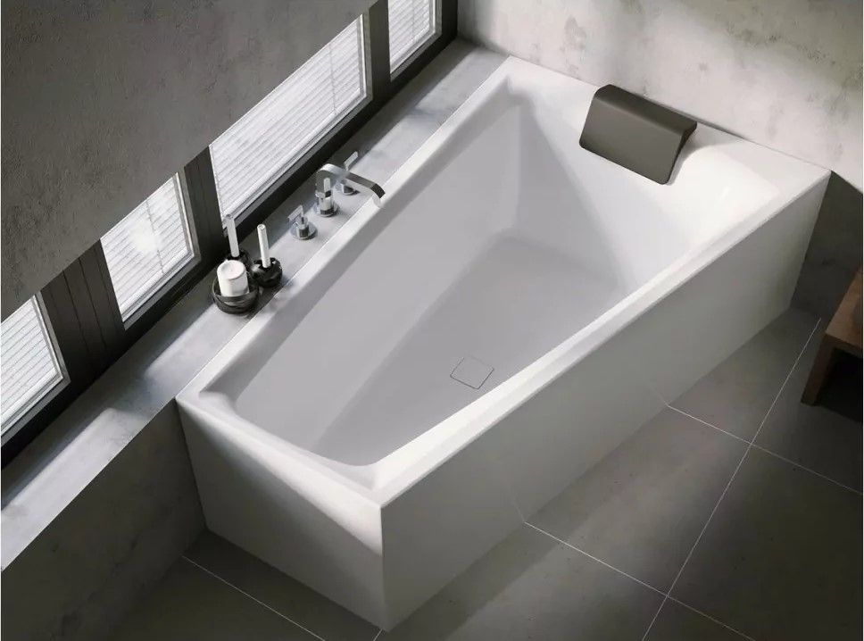 Встраиваемая акриловая асимметричная ванна RIHO Still Smart 170x110L Fall с удобным просторным местом для лежания.RIHO Fall - наполнение ванны через переливное отверстие. Носик смесителя - внутри ванны.