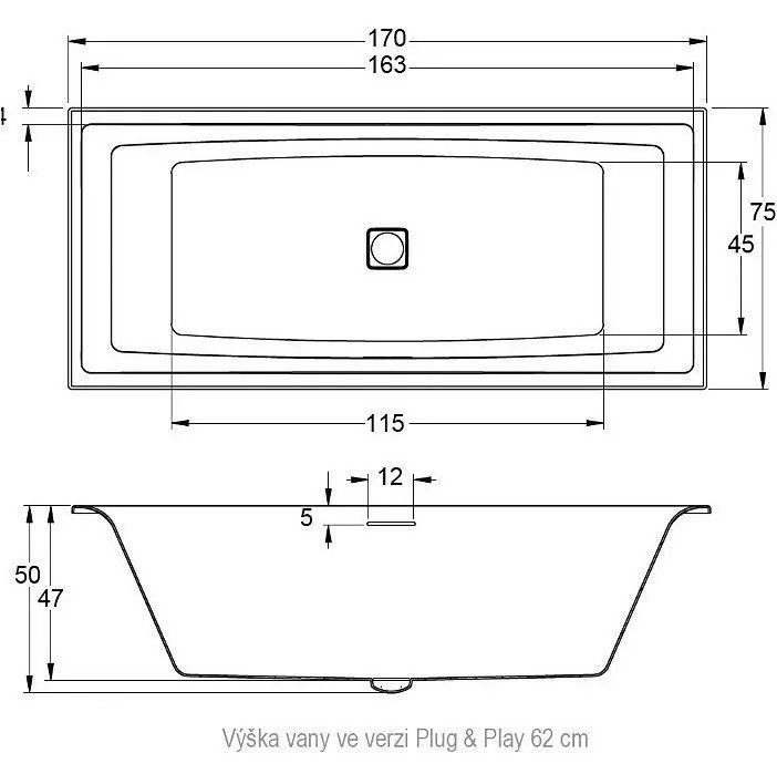 Отдельно стоящая прямоугольная ванна RIHO Still Square 170x75 R PLUG & PLAY, с нижним бортиком, изготовлена из белого глянцевого акрила. Тонкие борта ванны создают большое внутреннее пространство, где удобно лежать и принимать душ.