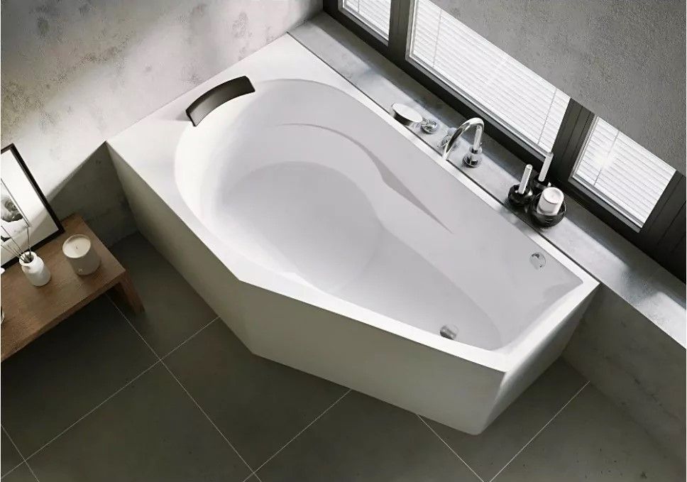 Отдельно стоящая асимметричная ванна RIHO Yukon 160x90 R PLUG & PLAY изготовлена из белого глянцевого акрила. Просторная закругленная спинка шириной 90 см имеет прекрасную лежачую форму, а в боковые стенки встроены продуманные подлокотники.