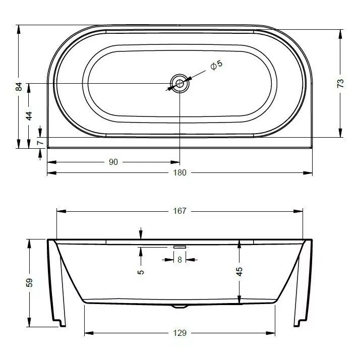 Щелевое отверстие перелива может быть использовано для встроенного наполнителя ванны Riho Fall (приобретается отдельно)