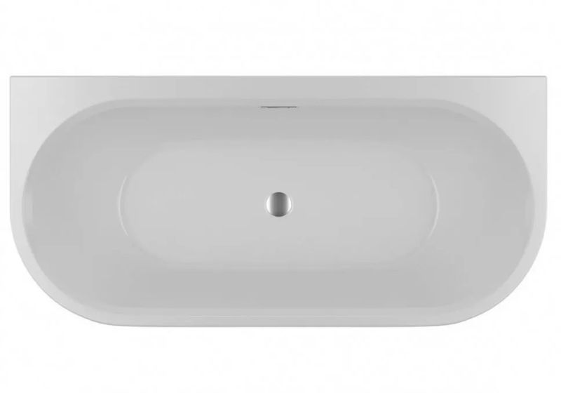 Отдельно стоящая пристенная, глянцевая белая акриловая ванна RIHO DESIRE BACK2WALL 180х84 LED с двойными стенками, со встроенным переливом и нажимным донным клапаном.