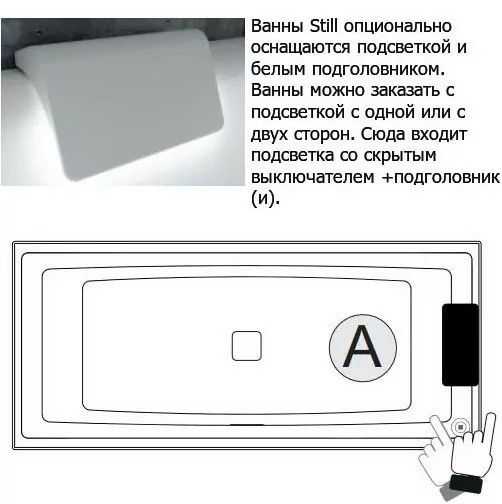 Акриловая ванна с подсветкой Riho Still Square LED B100003005 170х75см светодиоды и подголовник справа белый купить