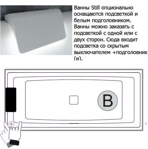 Акриловая ванна с подсветкой Riho Still Square LED B100004005 170х75см светодиоды и подголовник слева белый купить