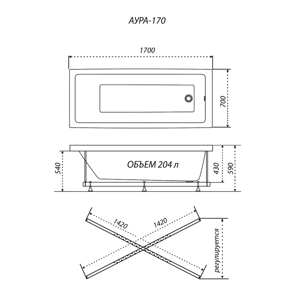 Акриловая ванна Triton Аура Щ0000043572 170x70 см на Х-каркасе белый