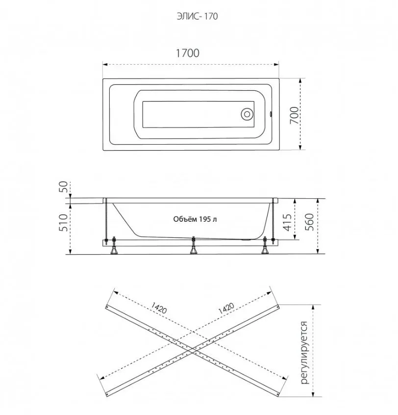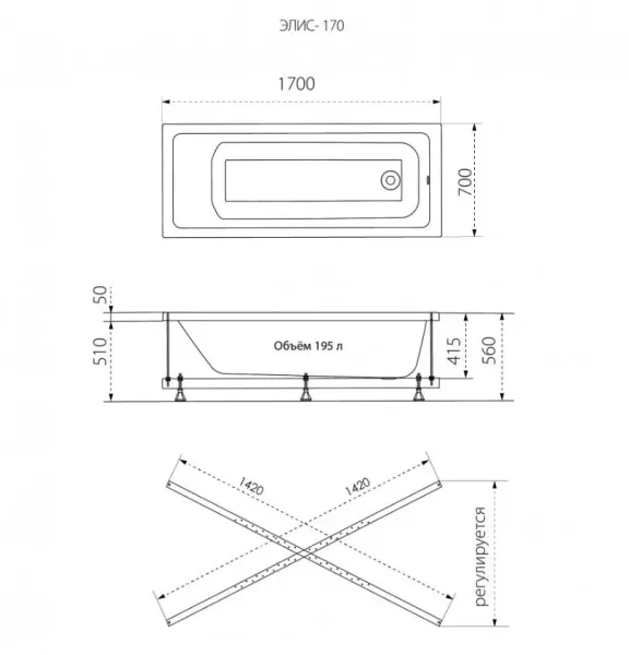 Акриловая ванна Triton Элис Щ0000067454 170x70 см на Х-каркасе белый