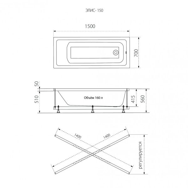 Стандартные размеры, см:150x70