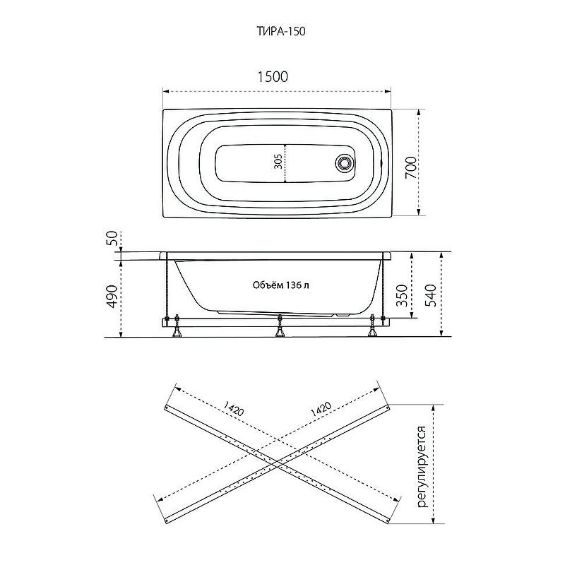 Для производства ванн Triton используются самые современные технологии и материалы, которые гарантируют высокое качество изделий и их долговечность. Ванны Triton это высококачественное, стильное, удобное и практичное решение для любой ванной комнаты. Ванна выдерживает вес 200 кг. Внимание! Ножки приобретаются отдельно.