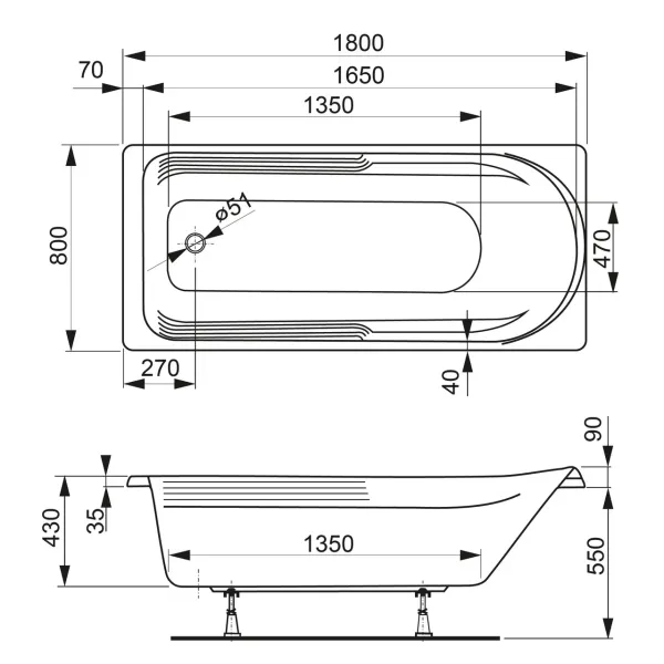 Акриловая ванна VagnerPlast Hera VPBA180HER2X 180x80см белый купить