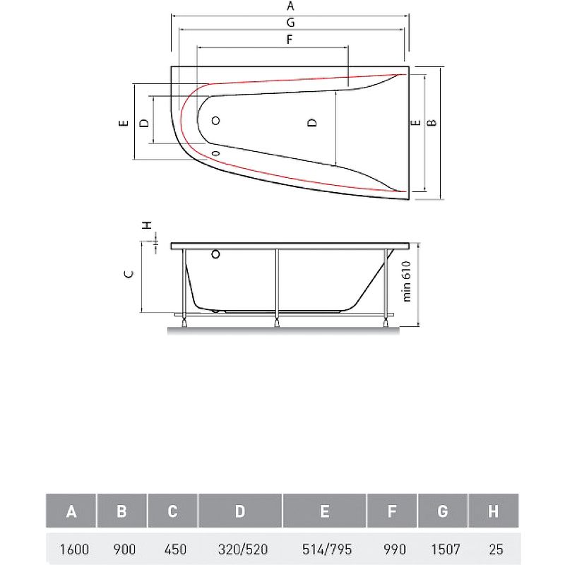 Акриловая ванна Vayer Boomerang 160x90 L Гл000010848 без гидромассажаХарактеристики:Цвет: белый.