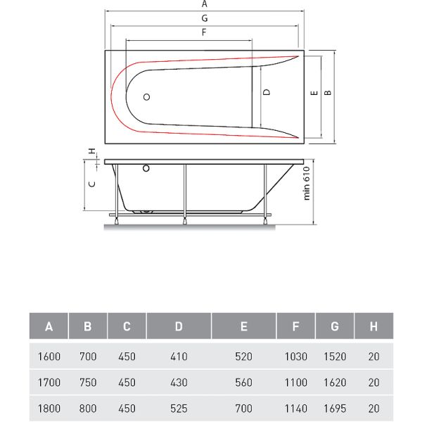Высота ванны на каркасе: 61 см.