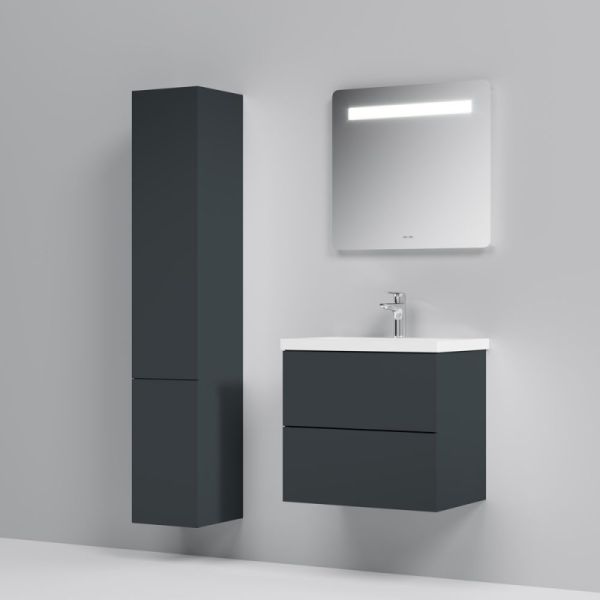Подвесная мебель для ванной Am.Pm GEM идеально подойдет тем, кто предпочитает минимализм в интерьере и выбирает абсолютный комфорт. Современный европейский дизайн от DanelonMeroni (Великобритания/Италия) Самая компактная и функциональная раковина на рынке: проекция всего 42 см при максимальной глубине чаши!Фурнитура push-to-open - открывание ящика нажатием на фасад. Ящики с антискользящим покрытием цвета антрацит – европейский стандарт.