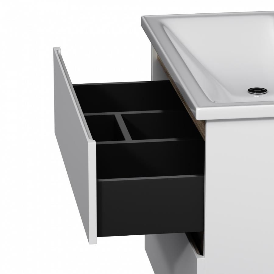 Функциональный органайзер в первом ящике позволит хранить необходимые косметические средства под рукой и в полном порядке. Внутреннее покрытие каждого ящика выполнено в современном