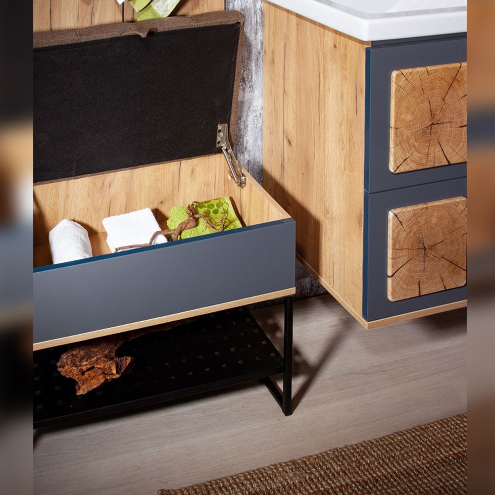 Материал корпуса - ДСП с покрытием ламинат, что делает ее легкой в уходе и долговечной. Мягкое сиденье обито качественной тканью, что обеспечивает комфорт при использовании. Ножки обеспечивают надежную поддержку, а система хранения с дверками позволяет удобно хранить различные мелочи.