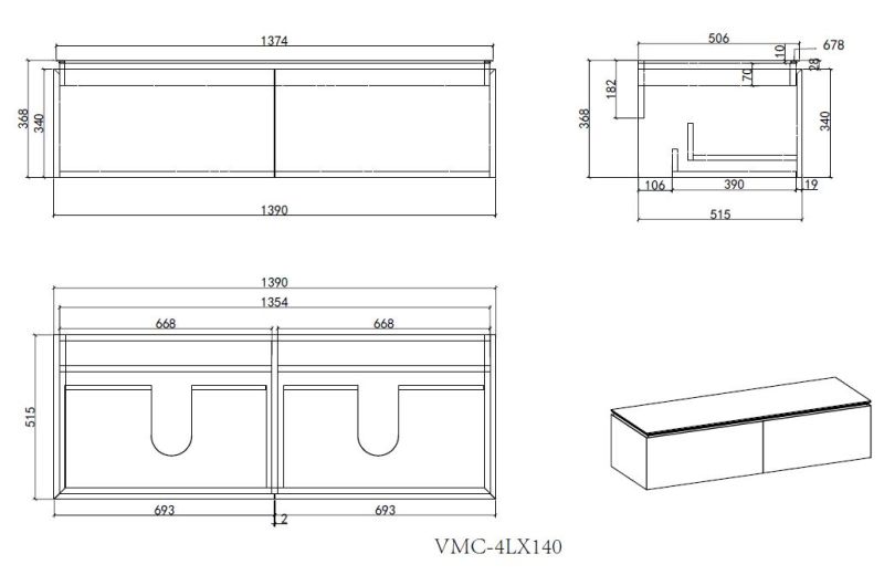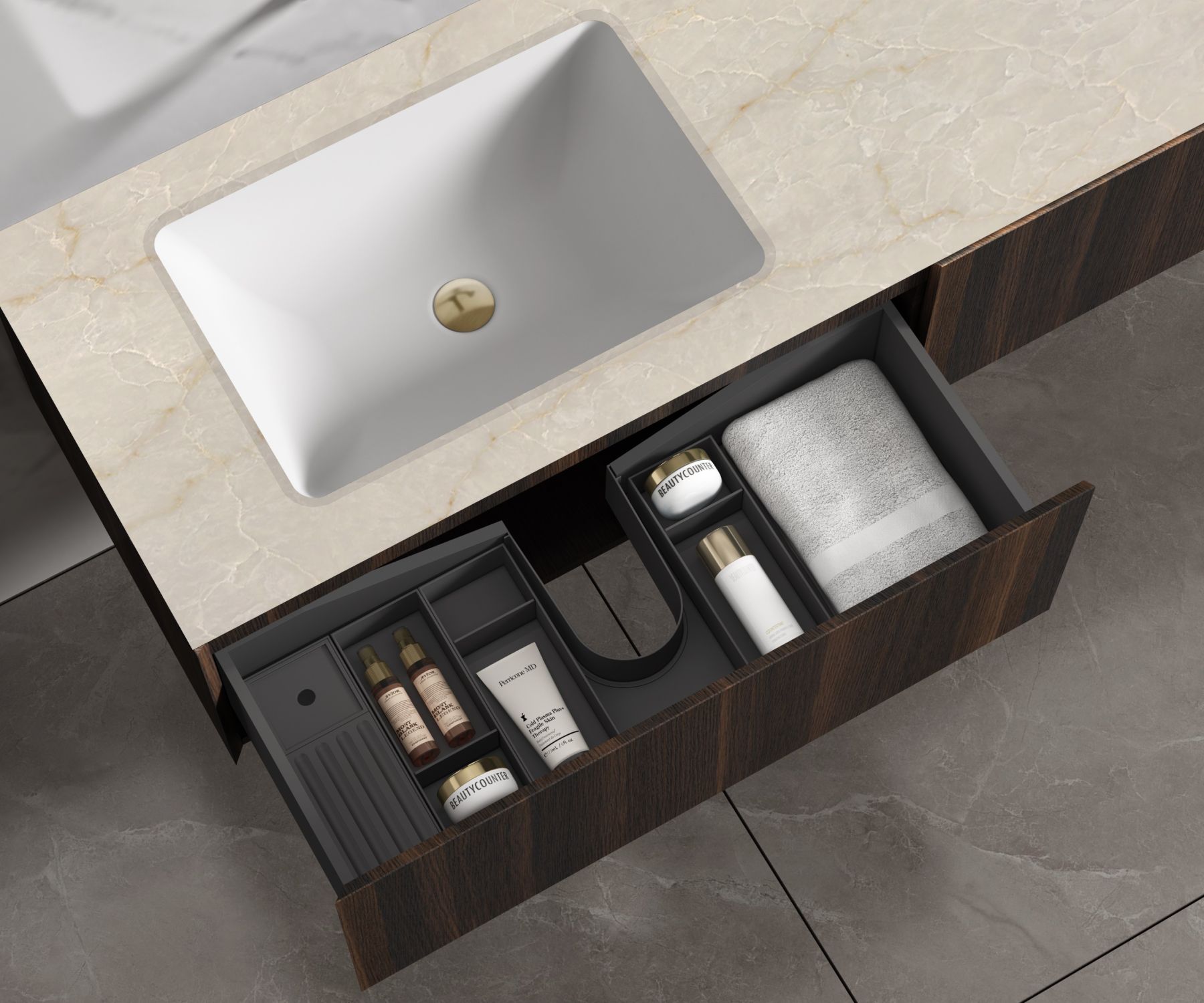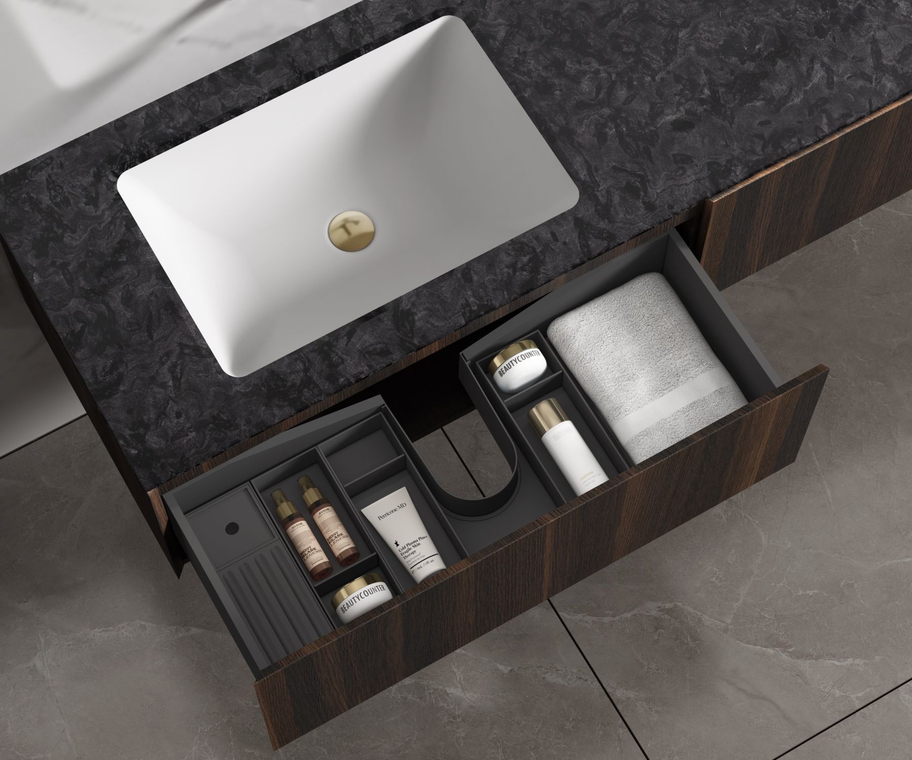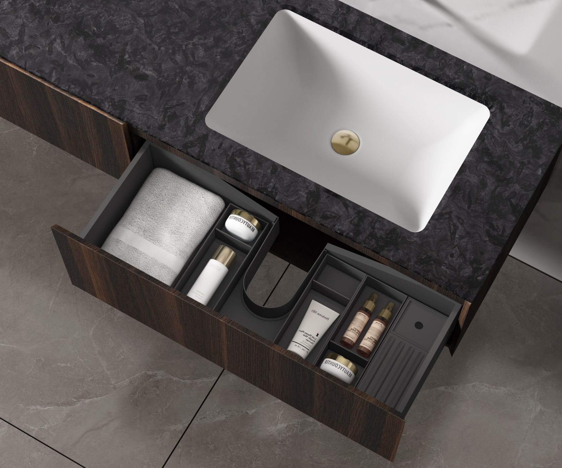 База под раковину Vincea Luxe 1400 подвесная, 2 выкатных ящика soft close, шпон натуральный орех