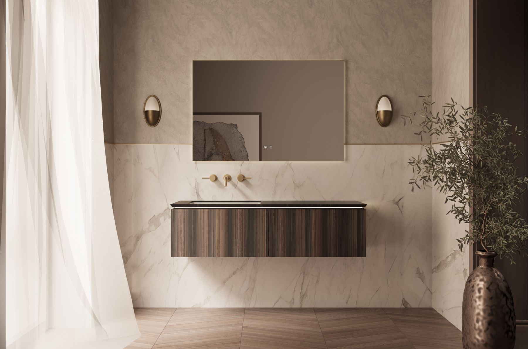 База под раковину Vincea Luxe 1400 подвесная, 2 выкатных ящика soft close, шпон натуральный орех купить