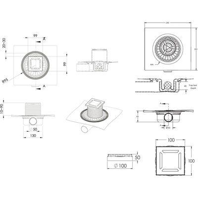 Решетка толщина 3мм, нержавеющая сталь AISI 304 Горловина трапа и эксцентрик, пластик Монтажная заглушка, PP Сифон PP с гидроизоляцией: горизонтальный выпуск D50 H65, монтаж 360° Комбинированный гидрозатвор Фланец с 3 сторон загибается на 90° Монтажный ключ, пластикДушевой трап Berges Wasserhaus Zentrum Antik 090364 10х10 Матовый хром – является надежным дренажным устройством в составе современной системы водоотведения. Страна изготовления – Германия, коллекция Zentrum Antik.Berges Wasserhaus Zentrum Antik 090364 10х10 Матовый хром выполнен в одном корпусе с гидрозатвором, благодаря чему достигается герметичность изделия и создается надежный барьер против запахов из системы канализации. Входная решетка квадратной формы является одним из наиболее удачных вариантов в том случае, когда Душевой трап Berges Wasserhaus необходимо интегрировать в плиточную отделку пола. Видимая часть конструкции изготовлена из полированной нержавеющей стали, которая отлично сочетается с другими элементами коллекции Zentrum Antik. Габаритные размеры изделия составляют 26.50х29.00 см при максимальной длине и ширине внешней части 10.0х10.0 см. Дренажное устройство производства Berges Wasserhaus имеет минимальную высоту – тем самым достигается простота установки путем встраивания в пол ванной. Конструкция имеет горизонтальный выпуск для прямого вывода стоков в канализацию. Высокая пропускная способность делает лоток Berges Wasserhaus Zentrum Antik 090364 10х10 Матовый хром одним из лучших вариантов при эксплуатации как в частных домовладениях, так и помещениях коммерческого назначения – банях, душевых спортзалов и т.д. Пластик, из которого сделан патрубок и элементы слива дренажного устройства Berges Wasserhaus, не боится вредного воздействия влаги, бытовой химии, высокой температуры и прочих разрушающих факторов. Хром матовый цвет наружной решетки лотка Berges Wasserhaus прекрасно сочетается с другими элементами коллекции Zentrum Antik.