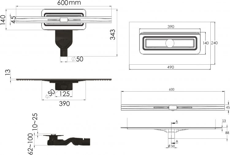 Berges Wasserhaus Simpel 091111 60 Хром глянец выполнен в одном корпусе с гидрозатвором, благодаря чему достигается герметичность изделия и создается надежный барьер против запахов из системы канализации. Прямоугольную форму решетки сантехнического устройства Berges Wasserhaus можно удачно обыграть при установке устройства вдоль стен, рядом с перегородкой и т.д. Видимая часть конструкции изготовлена из полированной нержавеющей стали, которая отлично сочетается с другими элементами коллекции Simpel. Габаритные размеры изделия составляют 60.00х4.50 см при максимальной длине и ширине внешней части 60.0х4.5 см. Дренажное устройство производства Berges Wasserhaus имеет минимальную высоту – тем самым достигается простота установки путем встраивания в пол ванной. Конструкцией предусмотрен вертикальный выпуск сточных вод. Этим достигается высокая пропускная способность лотка Berges Wasserhaus Simpel 091111 60 Хром глянец и возможность монтажа в любом месте, независимо от схемы разводки канализационных труб. Пластик, из которого сделан патрубок и элементы слива дренажного устройства Berges Wasserhaus, не боится вредного воздействия влаги, бытовой химии, высокой температуры и прочих разрушающих факторов. Хром цвет наружной решетки лотка Berges Wasserhaus прекрасно сочетается с другими элементами коллекции Simpel.