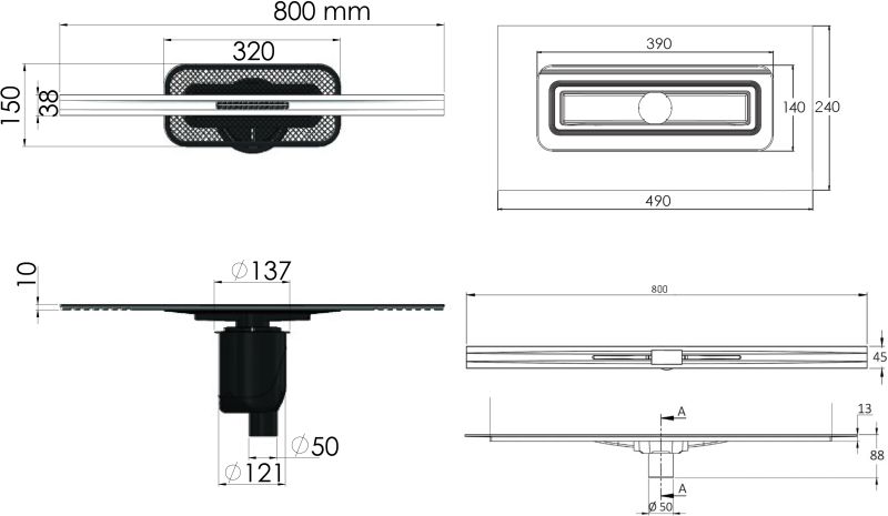 Душевой лоток Berges Wasserhaus Simpel 090012 80 Матовый хром – является надежным дренажным устройством в составе современной системы водоотведения. Страна изготовления – Германия, коллекция Simpel.Berges Wasserhaus Simpel 090012 80 Матовый хром выполнен в одном корпусе с гидрозатвором, благодаря чему достигается герметичность изделия и создается надежный барьер против запахов из системы канализации. Прямоугольную форму решетки сантехнического устройства Berges Wasserhaus можно удачно обыграть при установке устройства вдоль стен, рядом с перегородкой и т.д. Видимая часть конструкции изготовлена из полированной нержавеющей стали, которая отлично сочетается с другими элементами коллекции Simpel. Габаритные размеры изделия составляют 80.00х4.50 см при максимальной длине и ширине внешней части 80.0х4.5 см. Дренажное устройство производства Berges Wasserhaus имеет минимальную высоту – тем самым достигается простота установки путем встраивания в пол ванной. Конструкцией предусмотрен вертикальный выпуск сточных вод. Этим достигается высокая пропускная способность лотка Berges Wasserhaus Simpel 090012 80 Матовый хром и возможность монтажа в любом месте, независимо от схемы разводки канализационных труб. Пластик, из которого сделан патрубок и элементы слива дренажного устройства Berges Wasserhaus, не боится вредного воздействия влаги, бытовой химии, высокой температуры и прочих разрушающих факторов. Хром матовый цвет наружной решетки лотка Berges Wasserhaus прекрасно сочетается с другими элементами коллекции Simpel.