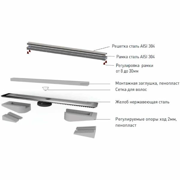 Душевой лоток Berges Wasserhaus B1 Keramik 091119 80 Хром глянец – является надежным дренажным устройством в составе современной системы водоотведения. Страна изготовления – Германия, коллекция B1 Keramik.Berges Wasserhaus B1 Keramik 091119 80 Хром глянец выполнен в одном корпусе с гидрозатвором, благодаря чему достигается герметичность изделия и создается надежный барьер против запахов из системы канализации. Прямоугольную форму решетки сантехнического устройства Berges Wasserhaus можно удачно обыграть при установке устройства вдоль стен, рядом с перегородкой и т.д. Видимая часть конструкции изготовлена из полированной нержавеющей стали, которая отлично сочетается с другими элементами коллекции B1 Keramik. Габаритные размеры изделия составляют 89.50х12.10 см при максимальной длине и ширине внешней части 80.0х6.1 см. Дренажное устройство производства Berges Wasserhaus имеет минимальную высоту – тем самым достигается простота установки путем встраивания в пол ванной. Конструкция имеет горизонтальный выпуск для прямого вывода стоков в канализацию. Высокая пропускная способность делает лоток Berges Wasserhaus B1 Keramik 091119 80 Хром глянец одним из лучших вариантов при эксплуатации как в частных домовладениях, так и помещениях коммерческого назначения – банях, душевых спортзалов и т.д. Пластик, из которого сделан патрубок и элементы слива дренажного устройства Berges Wasserhaus, не боится вредного воздействия влаги, бытовой химии, высокой температуры и прочих разрушающих факторов. Хром цвет наружной решетки лотка Berges Wasserhaus прекрасно сочетается с другими элементами коллекции B1 Keramik.