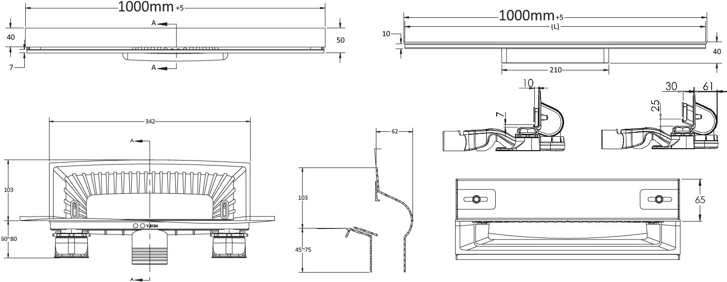 Вид решетки: продольная (с прорезью для воды).