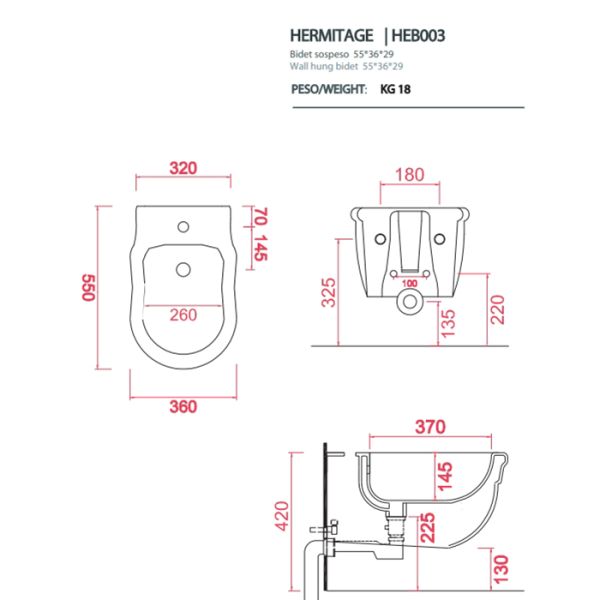 Биде Artceram HERMITAGE HEB003 01 00 белоеArtceram HERMITAGE Биде подвесное 36х55см с 1 отв под смеситель, с крепежом в комплекте, цвет белый