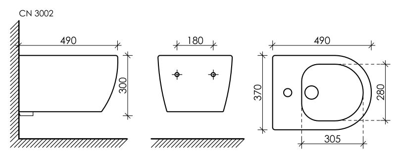 Подвесное биде Play, 1 отверстие под смеситель, с крепежом для полностью скрытого монтажа. В комплекте донный клапан с керамической накладкой