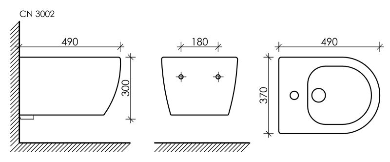 Подвесное биде Play, 1 отверстие под смеситель, с крепежом для полностью скрытого монтажа. В комплекте донный клапан с керамической накладкой