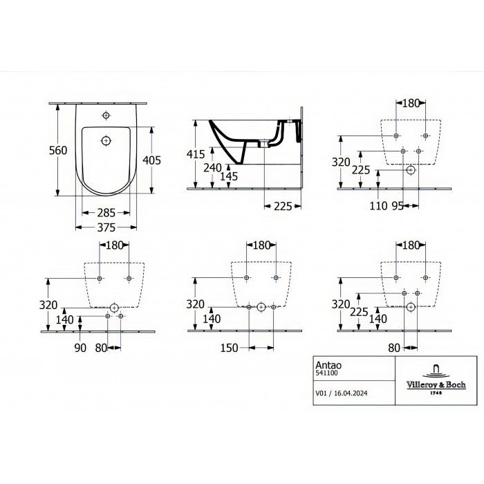 Биде Villeroy Boch Antao подвесное 541100R1 альпийский белый