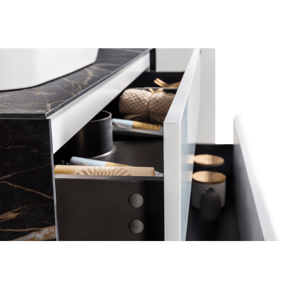 Black & White Universe 907U1200 тумба с раковиной 120 смУникальное сочетание классического белого цвета и темного с вкраплением изысканного золотого керамогранита по периметру тумбы и пенала идеально впишется в Ваш интерьер, наполняя комнату нотками роскоши.Окунитесь с головой во Вселенную мебели для ванных комнат. Откройте для себя коллекцию мебели для ванных комнат от скопления звезд до туманностей, которые позволят Вам создать уникальное пространство Вашей ванной комнаты. Раковина керамическая