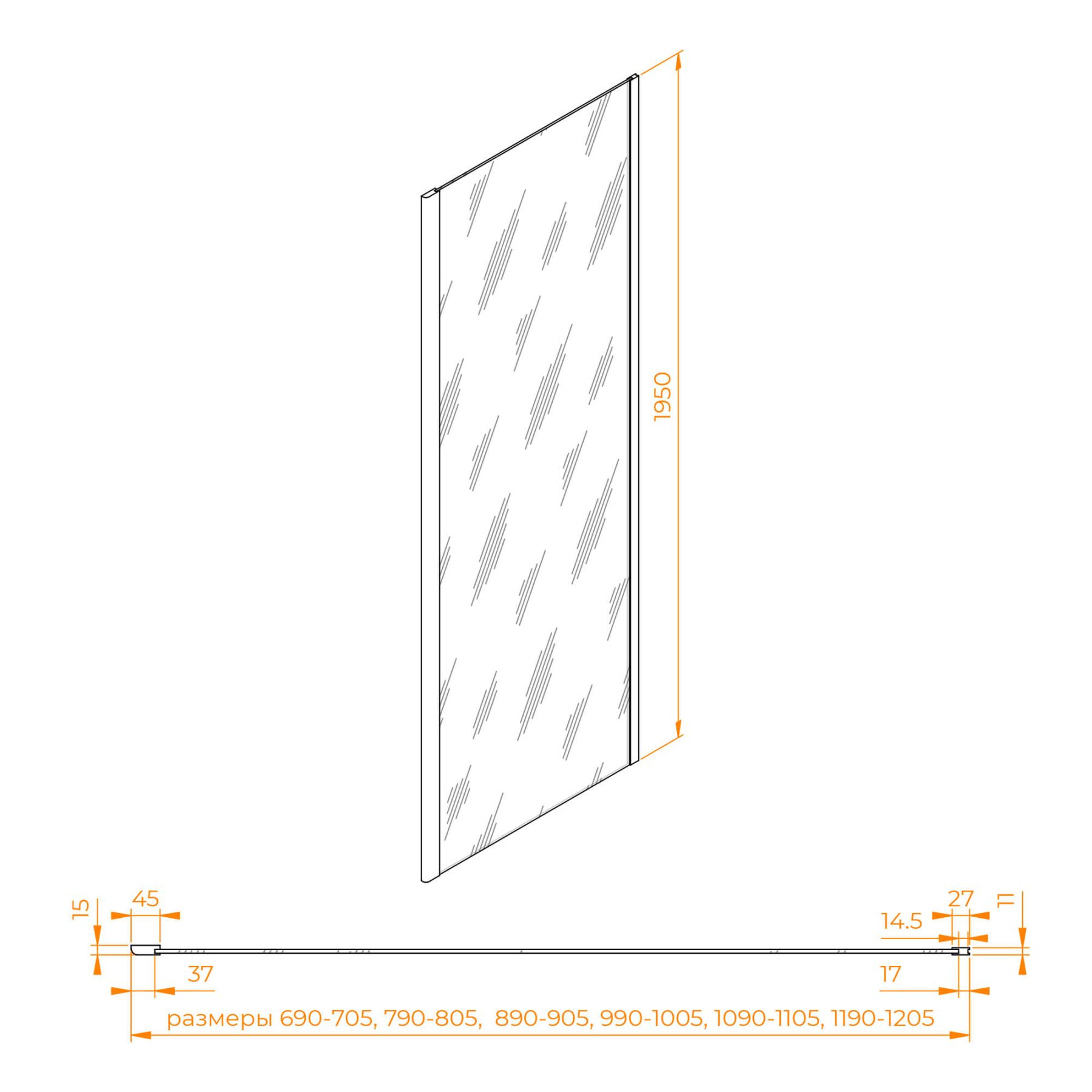 Комплектуется с моделями высотой 1950 мм и цветом профиля «чёрный». Подходит к моделям WA-002 / SV-12 / SV-13 / LE-12 / PA-11 / PA-12 / PA-13 / PA-016 / PA-23 / PA-24