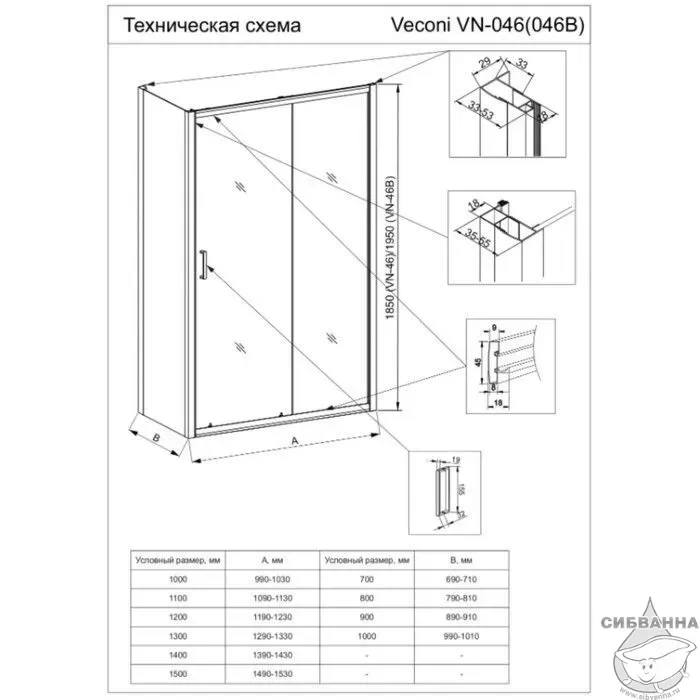 Боковая панель Veconi KP-03B, 1100х1950 черный, стекло прозрачное купить