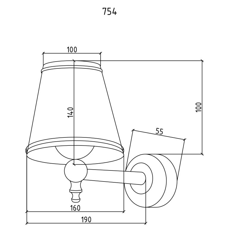 Диаметр настенного основания: 55 мм.